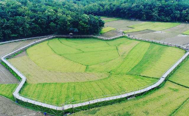 Persawahan Sukorame Bantul: Wisata Alam Bernuansa Sawah Hijau di Kawasan Mangunan.